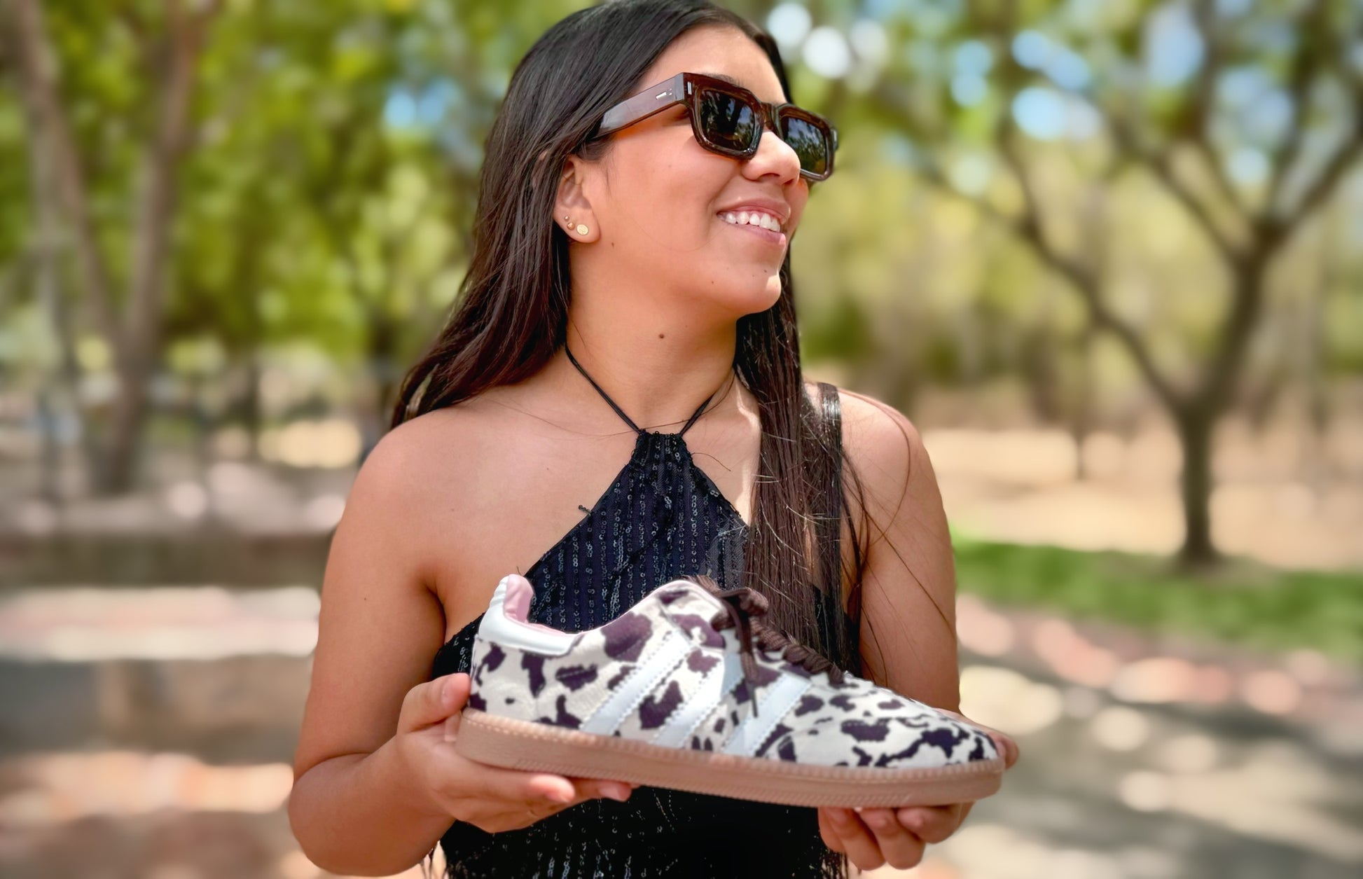 Con un moderno estampado tipo “cow print”, estas zapatillas no solo marcan tendencia, sino que combinan comodidad y estilo en cada paso.